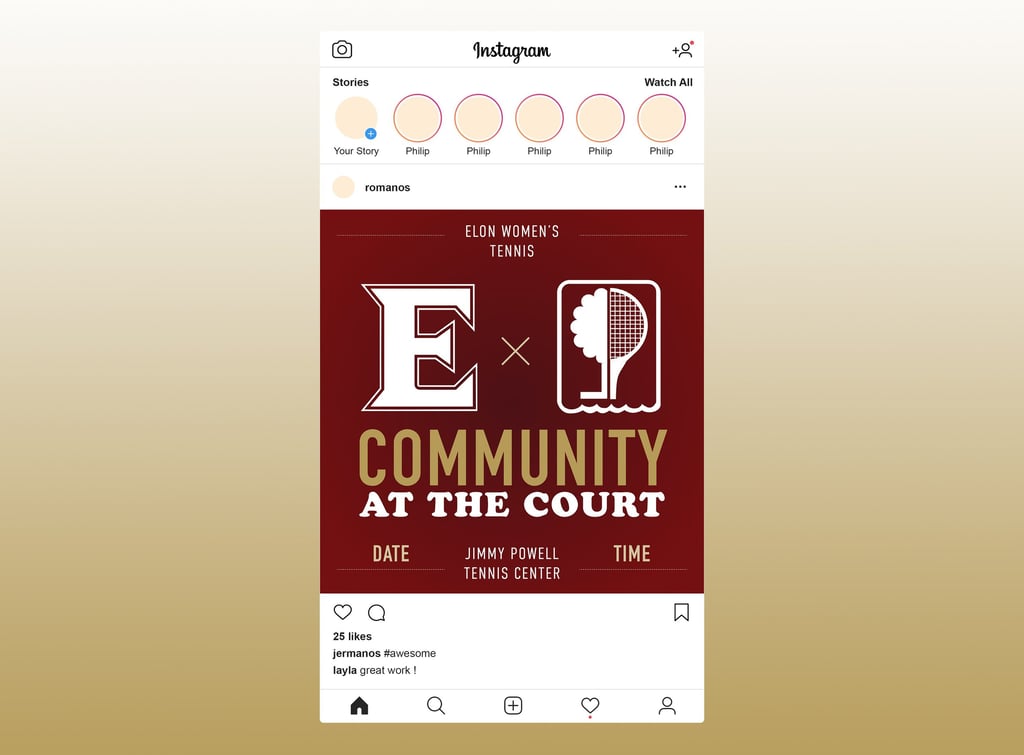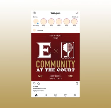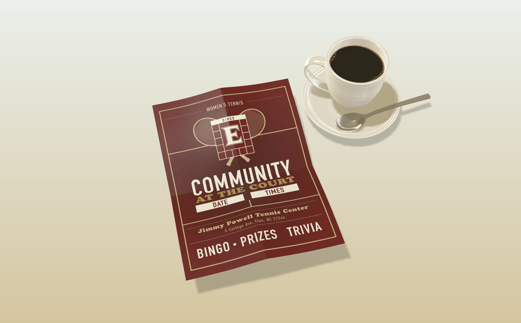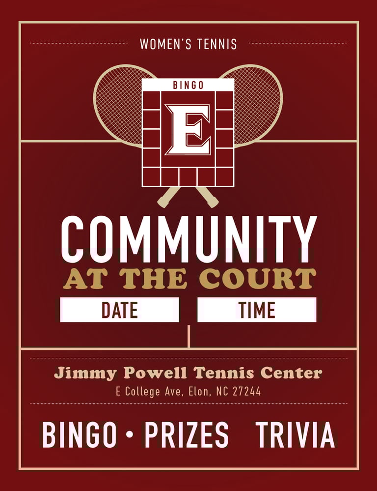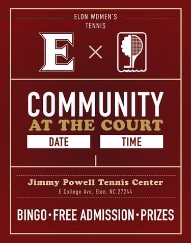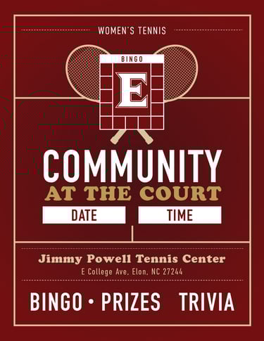 For this project, my team and I developed a complete themed night and marketing strategy for Elon Women’s Tennis. Our planning document provided a detailed breakdown of event-day logistics and target demographics. We landed on a Community Night theme for the greater Alamance/Burlington region, featuring Bingo as the main activity. Although the scope extended well beyond design, I was tasked with creating the flyers, Instagram posts, and event merchandise.