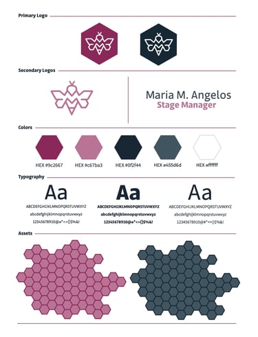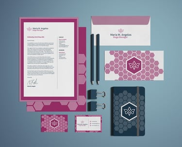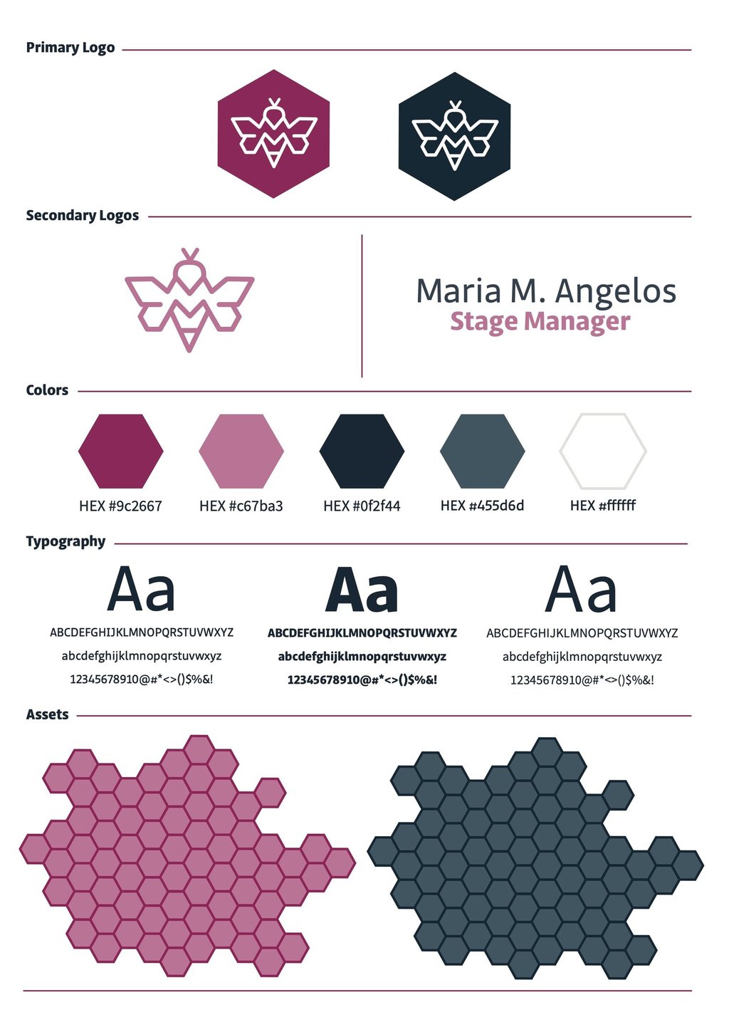 To reinforce the bee motif, I utilized a hexagon as the logo’s primary container. It symbolizes structure, balance, and interconnectedness. These qualities mirror her role in theater production, where she works as member of a hive to ensure that productions run smoothly. For the typography, I selected a Greek-style font to honor her Greek heritage, an important part of her identity and personal brand.