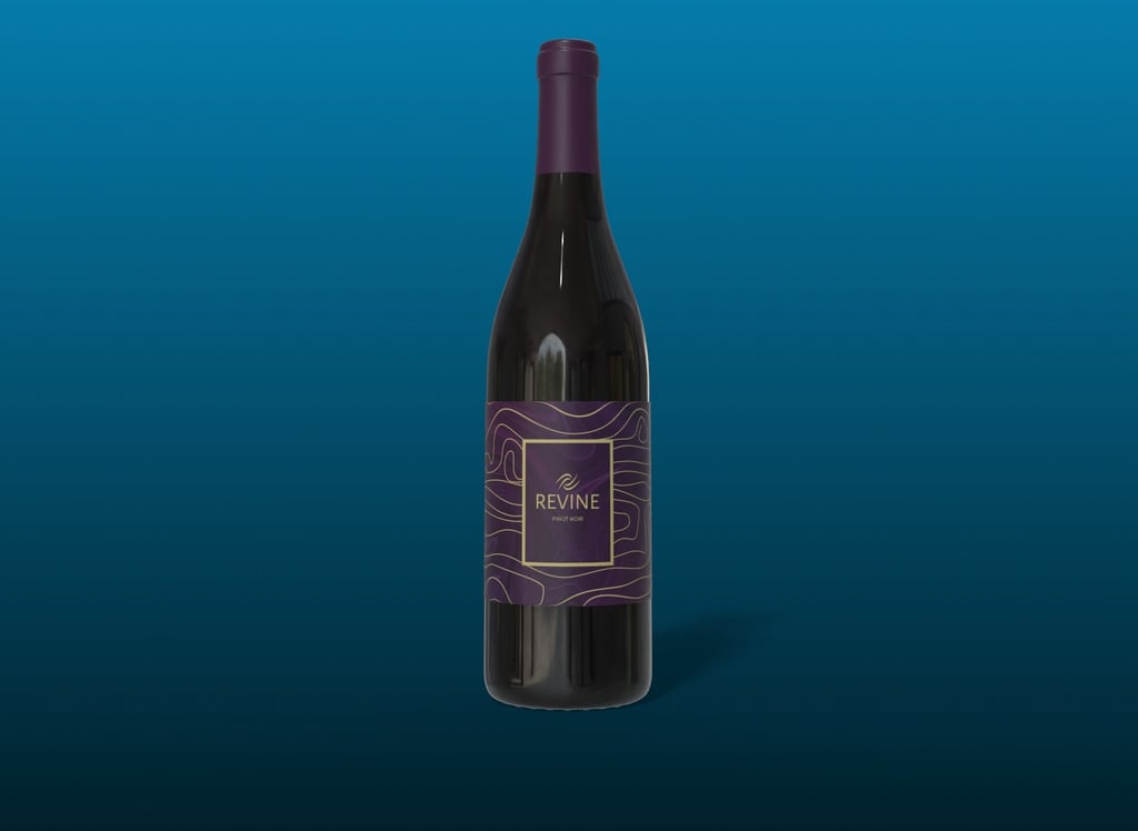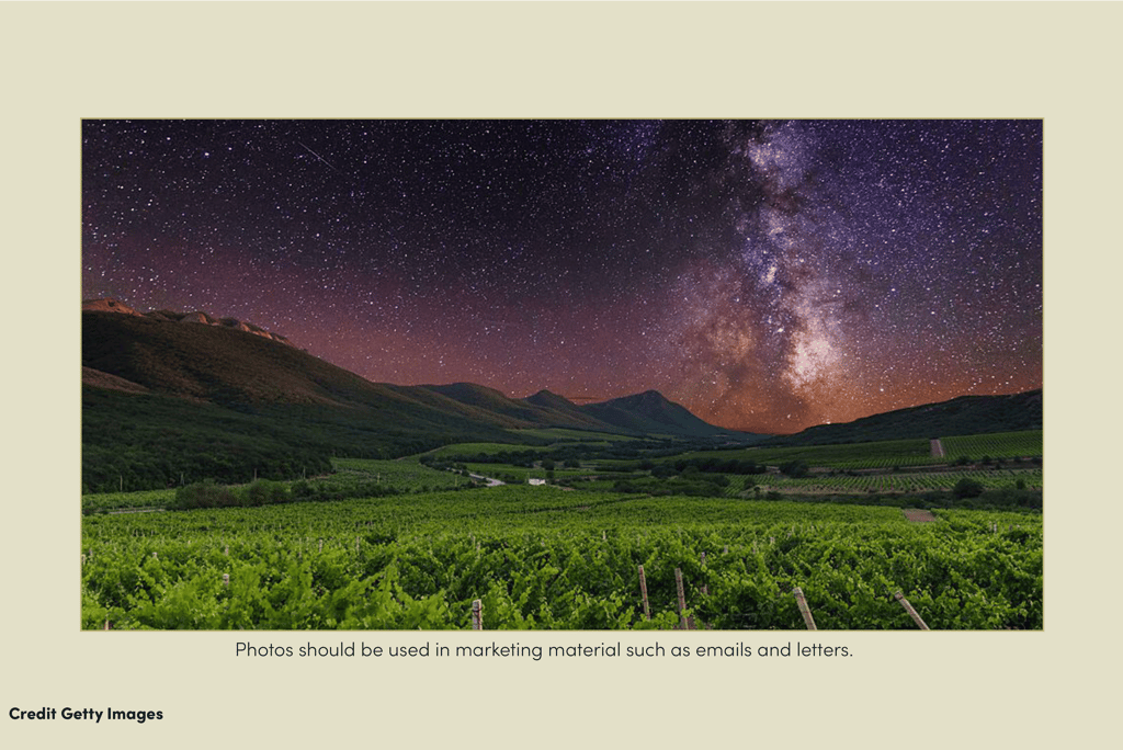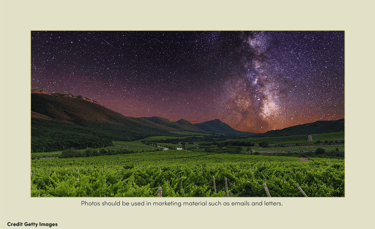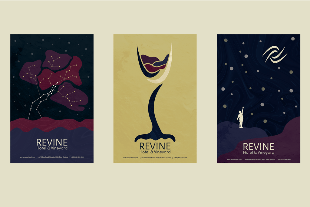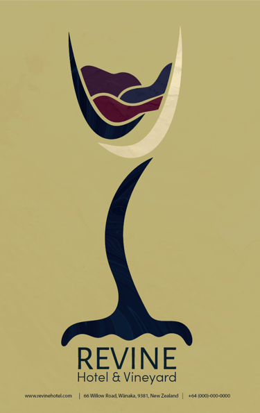 This poster combines several key assets. The wine inside the glass is shaped like the surrounding hills’ mountain peaks.
