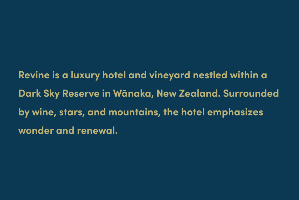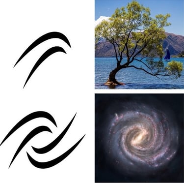 The logo deconstructs the curve of the Wānaka Tree, a popular tourist destination in the area, and uses it to create a spiral similar to one found in a galaxy